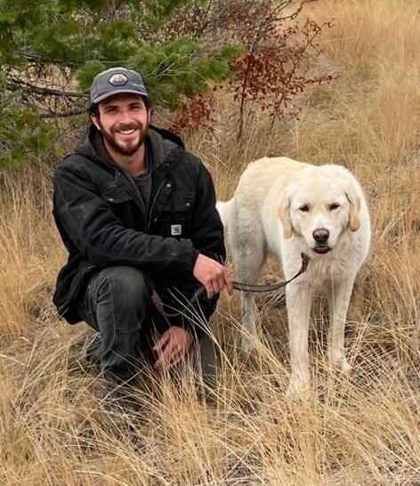 Jaymie with his four-legged friend and protector Jax, on their 160 acre sanctuary.