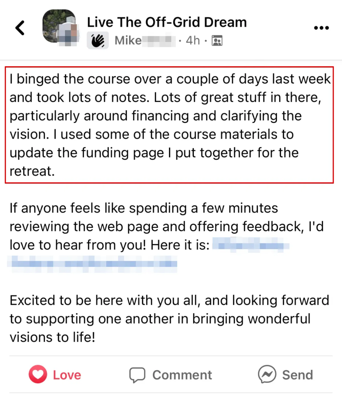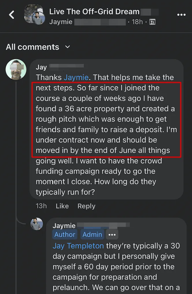 Yes! You can join our VIP Group and get 1-2 live video calls per month with me, Jaymie, where I'll personally help you. We can review your plans, assess land, negotiate with investors, design land, overcome things holding you back, and learn from other peoples projects in a small group setting. Whatever it is that you need. This also gives you priority in the Investors Network (more on that below) and allows you to list us as consultants or advisors for your project.